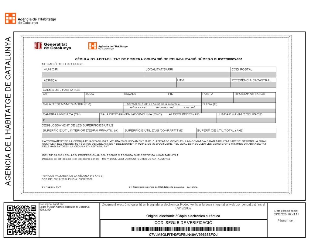 La cédula de habitabilidad es un documento administrativo que acredita que una vivienda es apta para ser destinada a residencia de las personas y que cumple las condiciones técnicas de habitabilidad, según la normativa vigente.